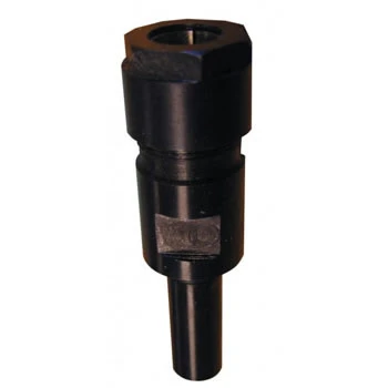 When working with a router table which has a table made of thick material, typically the cast iron type or home made tables, a collet extension may be required. Certain jobs require the cutter to be lifted above the surface of the table. If the table is thick, there may not be enough plunge depth on the router to achieve this.