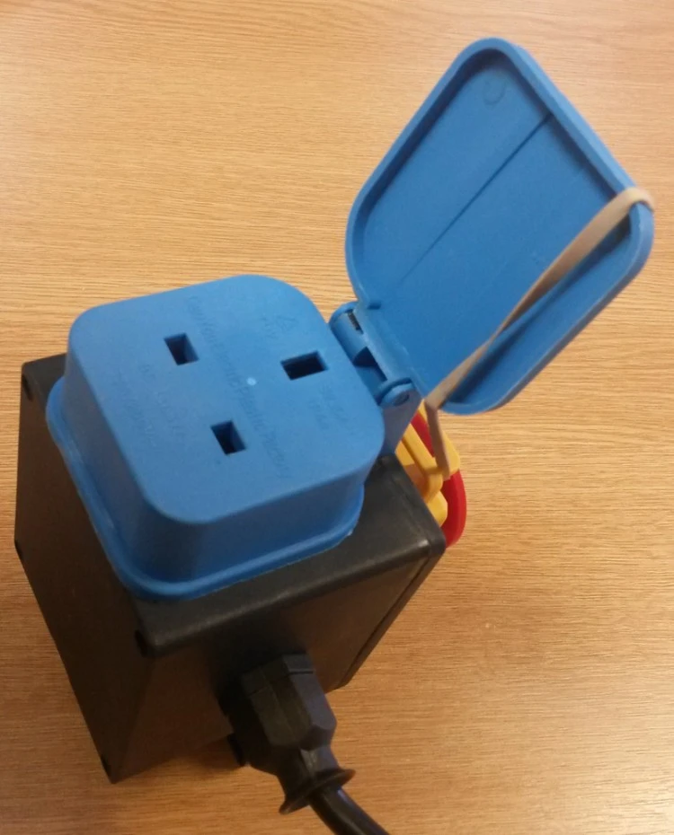 It also has is an integral socket built into the underside of the casing. Therefore simply plug your powertool into the socket and connect the plug to your electric supply. It also has 2 slotted fixing points thus allow the switch to be used with any router table, commercial or home made.