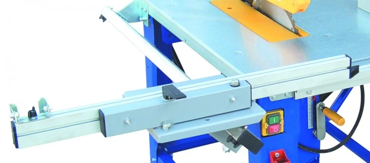 The sliding carriage greatly increase the accuracy of cross cutting over the standard cross cut fence, supplied with the basic saw. The sliding carriage consists of a bearing guided table with a large fence adjustable 90 to 45 degrees. It is also provided with quick action angle setting and a flip over length stop.
