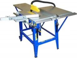Supplied with 24 tooth TCT blade, dust extraction kit with 100mm outlet, lifting handle and wheel kit, cable and plug.