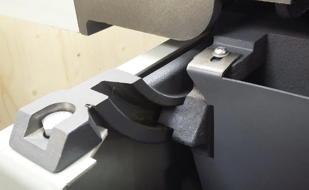 The rip fence runs on a solid steel bar. Thus it allows dimensions of up to 1225mm to be set. There is also a micro adjuster to allow the rip fence to be moved by small amounts.