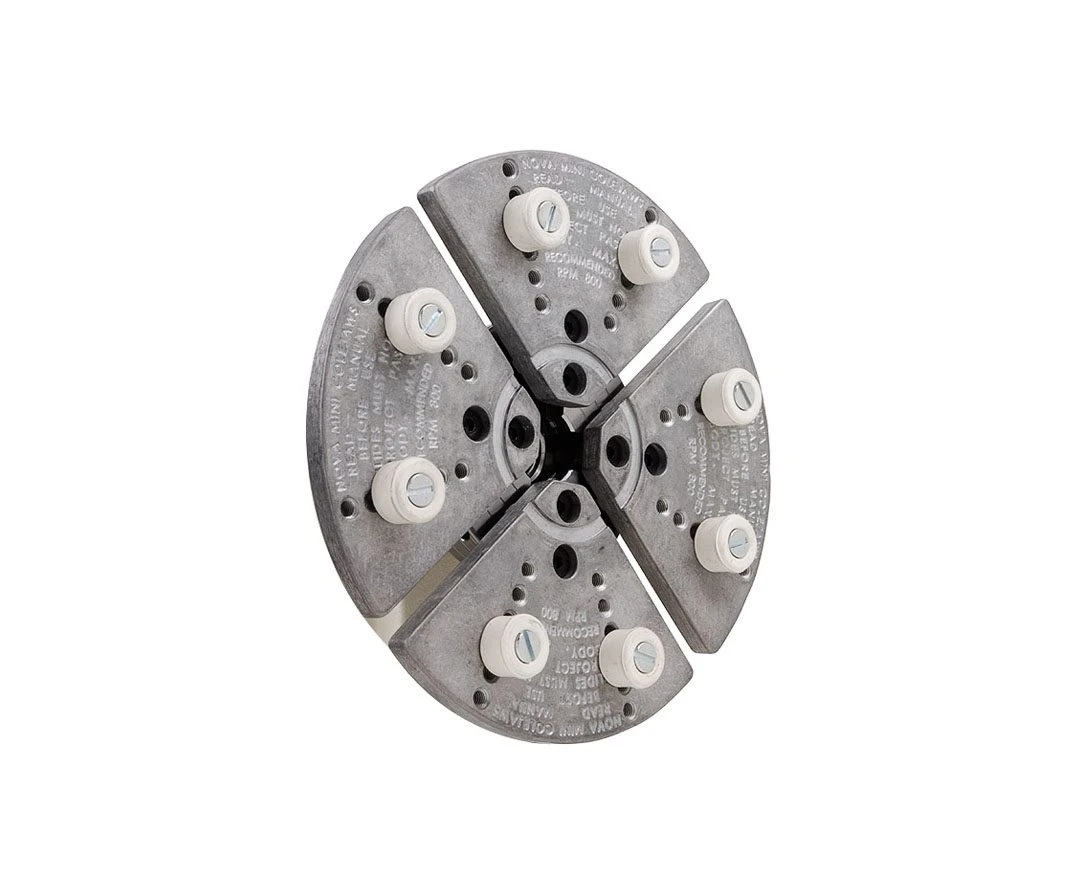 Duplicate accessories are not needed for different NOVA chucks. Other NOVA accessory jaw sets can be added to the Cole Jaws making a combination jaw facility expanding dovetail facility for mounting bowls/platters and a reverse dovetail for mounting footed bowls/platters. Suitable for lathes with a minimum 10″/254mm swing diameter.