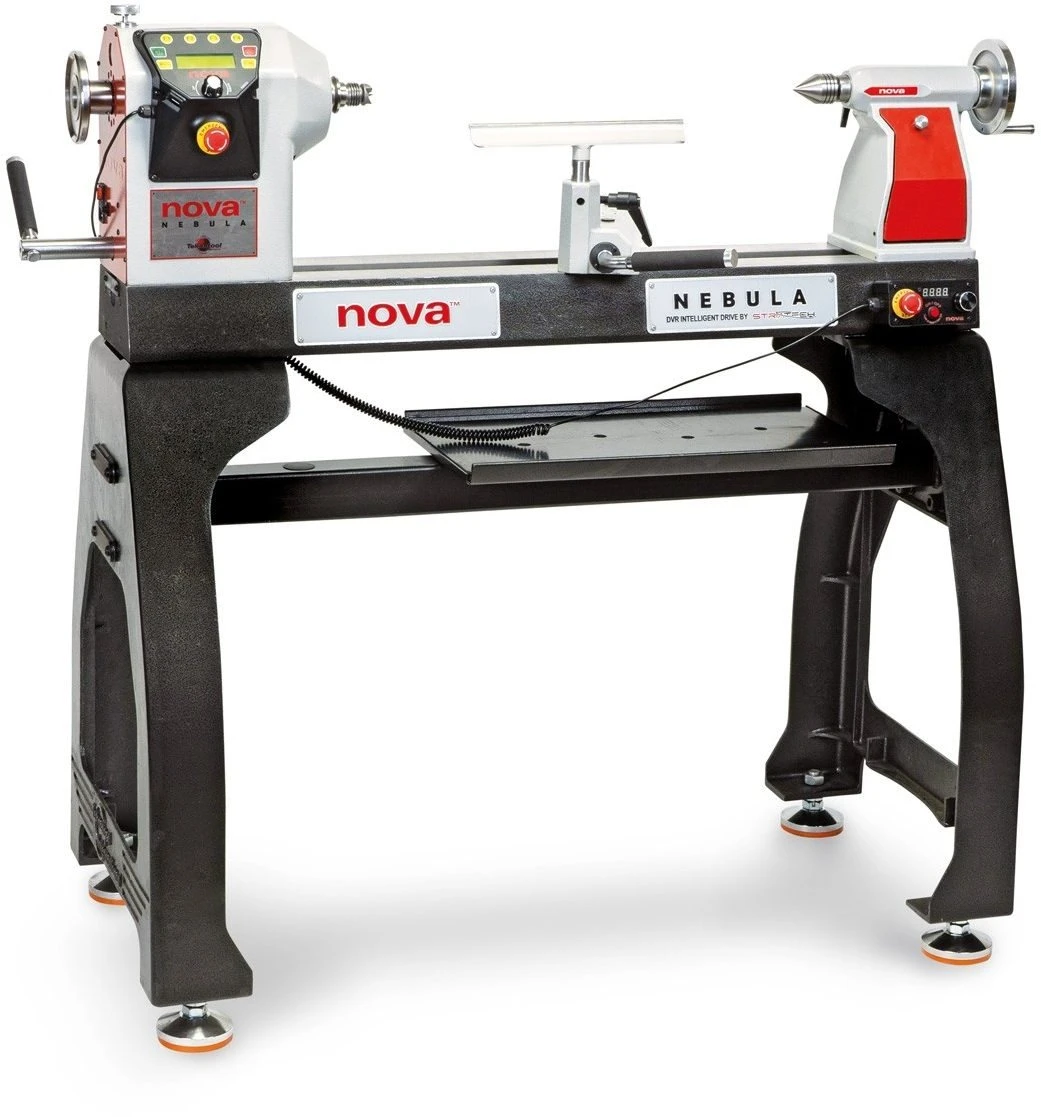 NOVA Nebula DVR Lathe is an 18″ DVR Lathe that enables you to explore new frontiers in woodturning with Nebula, the new 2.5HP lathe with smart, direct-drive motor technology from NOVA that’s redefining what a full-sized lathe can do. Nebula goes far beyond any other lathe in its class: just a twist of a knob and speed can be adjusted from 100 rpm up to 4000 rpm with no sacrifice in torque. Nebula’s outstanding machine features and specifications include a 360-degree pivoting and sliding head, an 18” (457mm) over bed swing and 25” (635mm) between centres. Whether you’re turning large projects or small, Nebula’s unparalleled, smart motor technology from Striatech has an easy-to-use, software-driven controller and provides the ultimate in smooth performance, intelligent control, and power under load.
