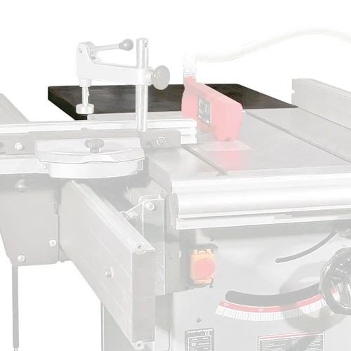 SIP 01446 with 01448 rear table extension.Β The saw has a large cast iron table to ensure accuracy and comes complete with two extension tables, a cabinet stand and top extraction pipe. For added speed and accuracy the saw has a sturdy, full-length rip fence with a βQuick-lockβ micro adjustable lock. The machine has a heavy-duty cast mitre fence. Effective dust extraction is via a 100mm outlet. Supplied with: 12β TCT Saw Blade.