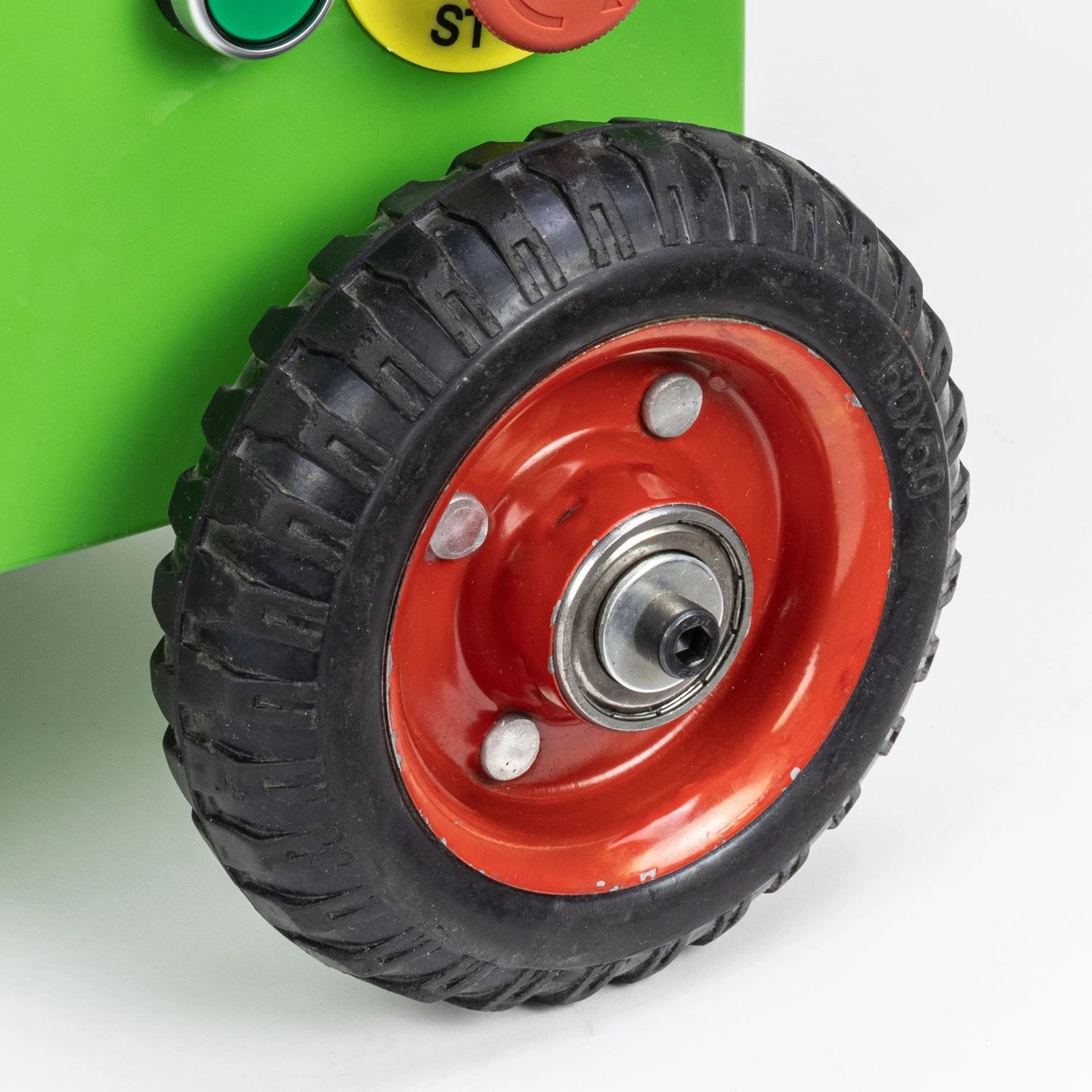 - Solid wheels with pull handle for mobility around the work area
