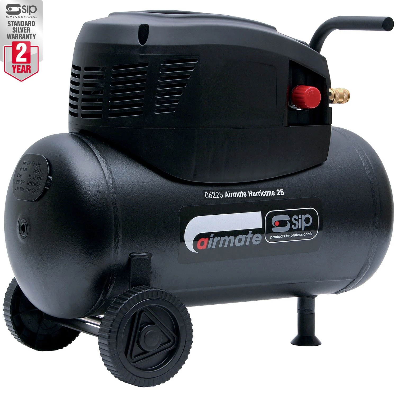 SIP 06225 25 Direct Drive Compressor boasts a fine balance between power and mobility, offering consistently high-quality air supply whilst maintaining and lightweight and compact design mounted on two large wheels.