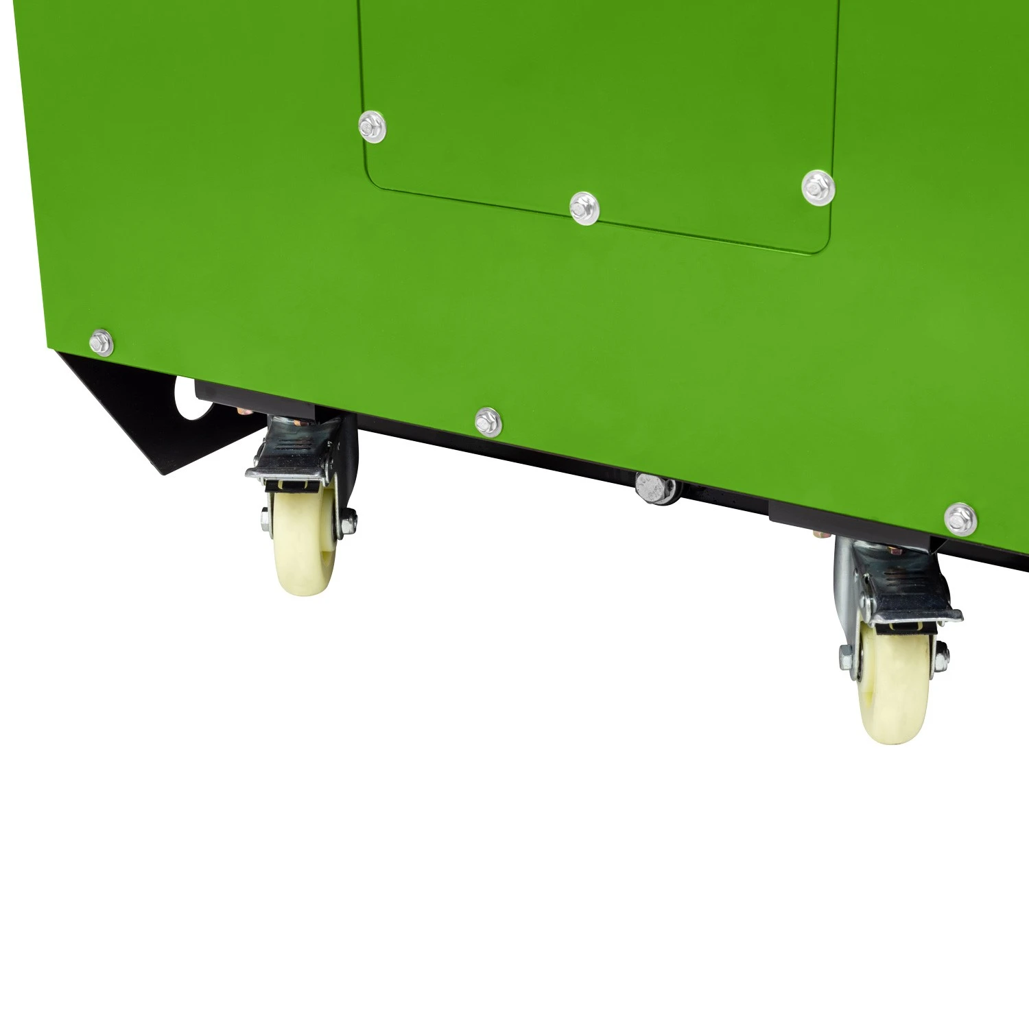 Powerful yet silenced at 112dB(A), it is enclosed in a heavy-duty metal cabinet for soundproofing and to safeguard against chips and damage. An easy-access service panel is fitted and the generator has IP23M protection.
