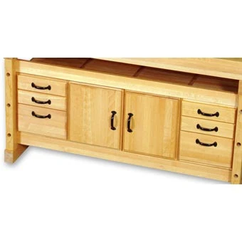 An optional cabinet with maximum useful storage space which will add weight to your bench. It is made with beech fronts, top quality drawer slides and includes six storage drawers and double door tool cupboard, oil finished.
