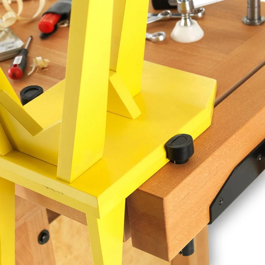 - Tapered faces hold workpiece securely on the bench top