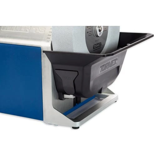 The Tormek T-8 Original Sharpening System has a 250mm x 50mm water-cooled grindstone and a 220mm x 31mm leather tyred honing wheel. Powered by a quiet 200W motor, Tormek’s unique and efficient drive system maintains constant speed, even under load. Tools can be sharpened either with the Supergrind wheel cutting towards or away from the edge. The T-8 features a strong, cast-alloy casing. The mounting sleeves for the universal support are an integral part of the casting. The design eliminates the possibility of any misalignment between the universal support and the grinding wheel. The universal support bar has a micro-adjuster, which makes setting up or replicating a sharpening angle easy and highly accurate. The Advanced Water Trough features a screw lift mechanism. You can fit it, fill it and then by simply turning the knob, raise the trough to bring the water into contact with the stone. It makes removing the trough for emptying just as simple. The T-8 includes a magnetic scraper for efficient cleaning. The unit has a NVR safety switch with a strong waterproof cover. The T-8 is suitable for use in education and other areas where an NVR switch is a necessity.